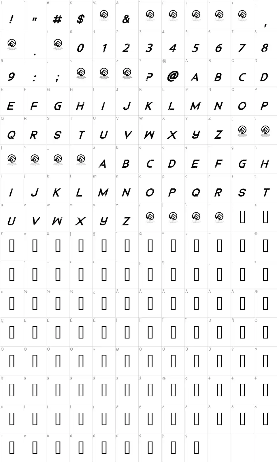 - Mapa znaků