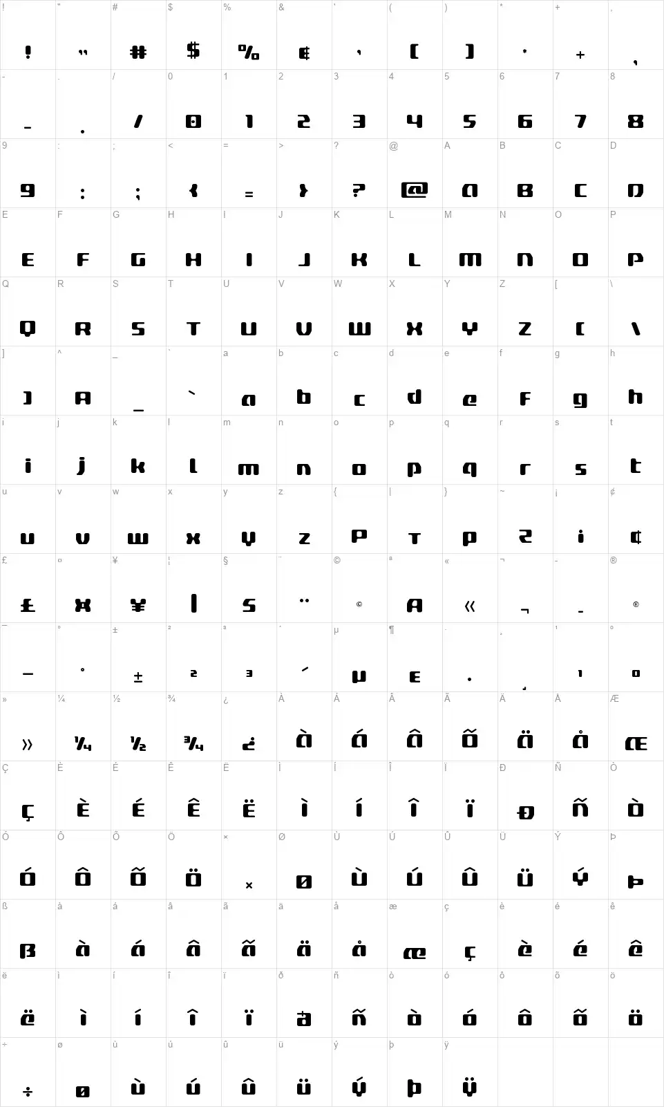 Delta Phoenixfont character map