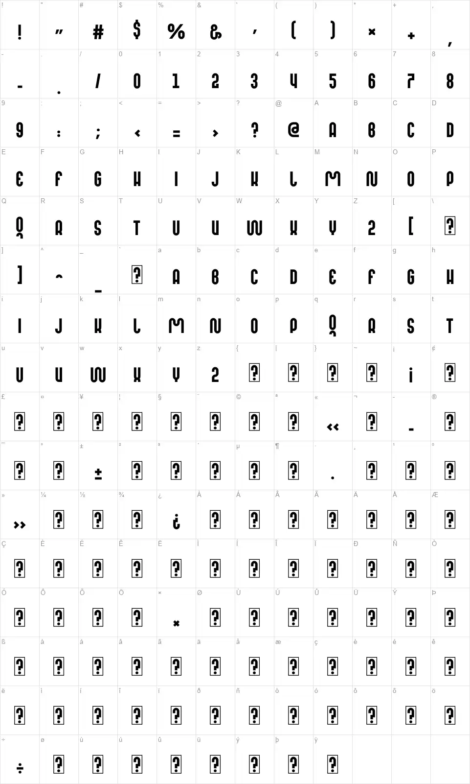 - Mapa znaků